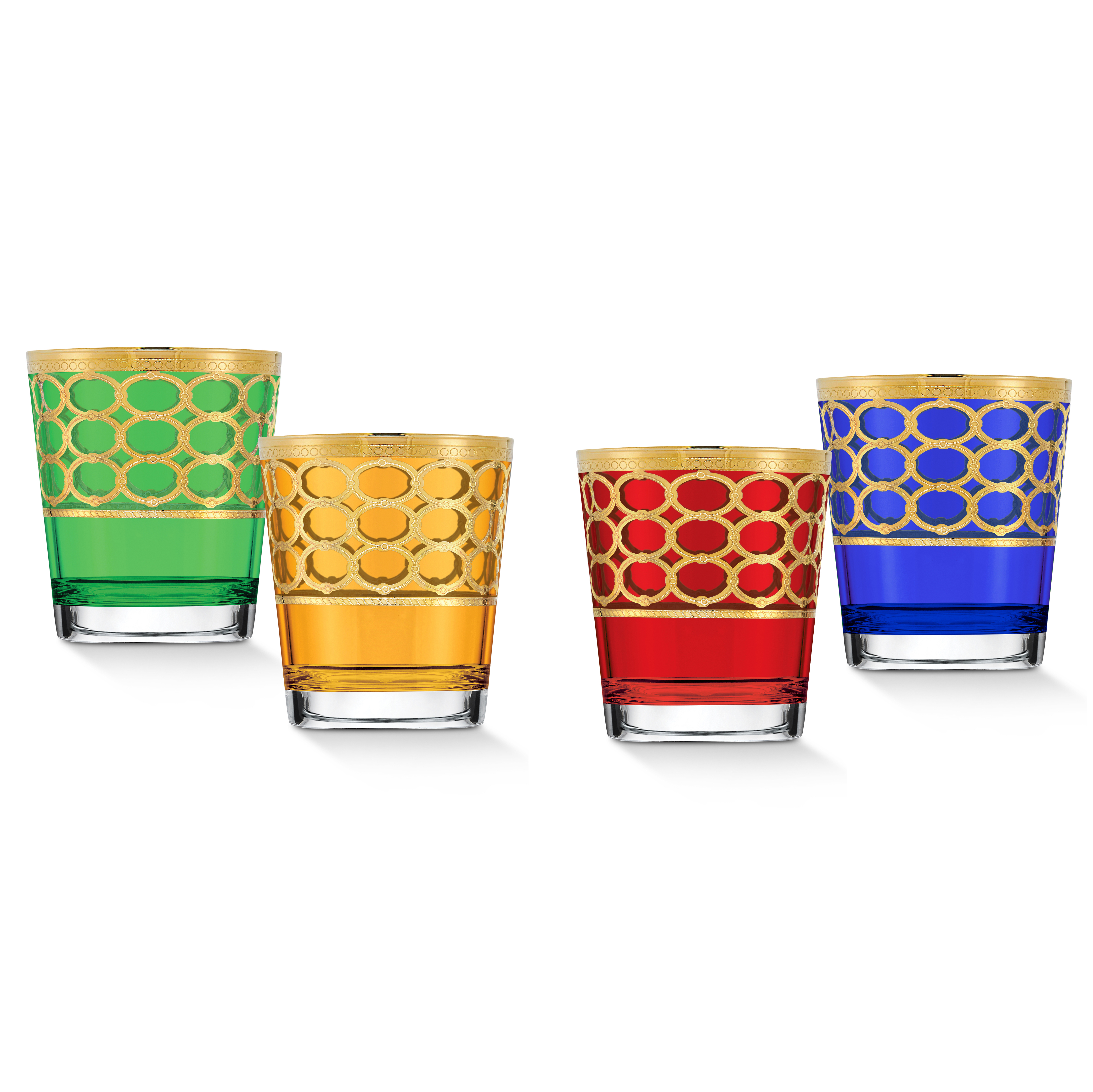 • Lorren Home Trends Multicolor Double Old Fashion with Gold Rings, Set of 4