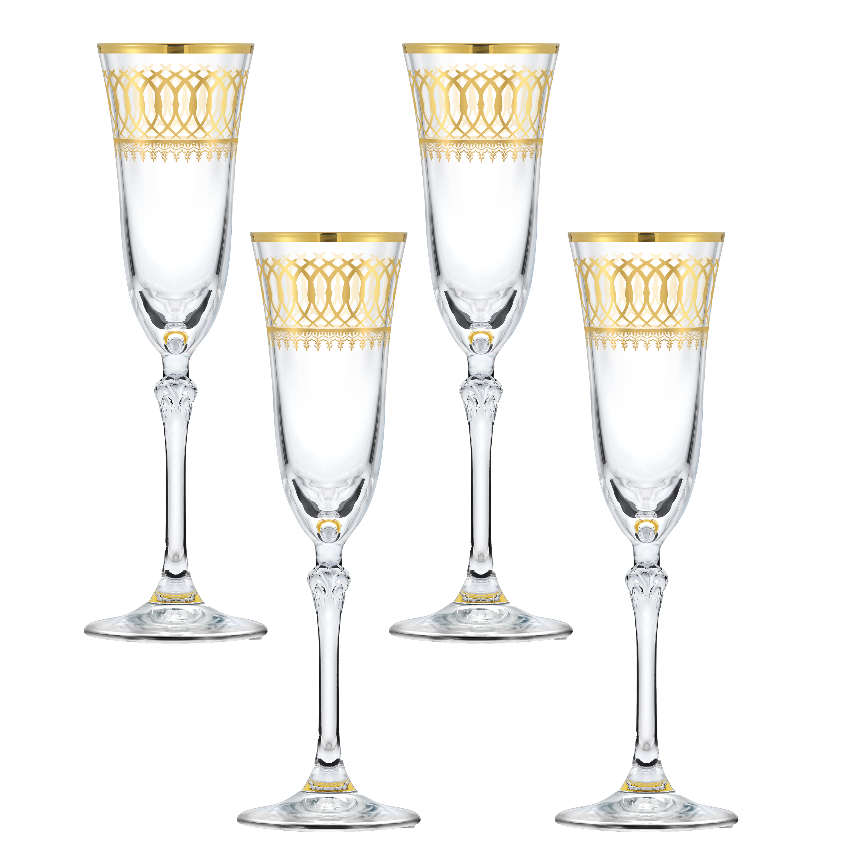 • Lorren Home Trends Gold Embellished Champagne Flutes with Gold Rings, Set of 4