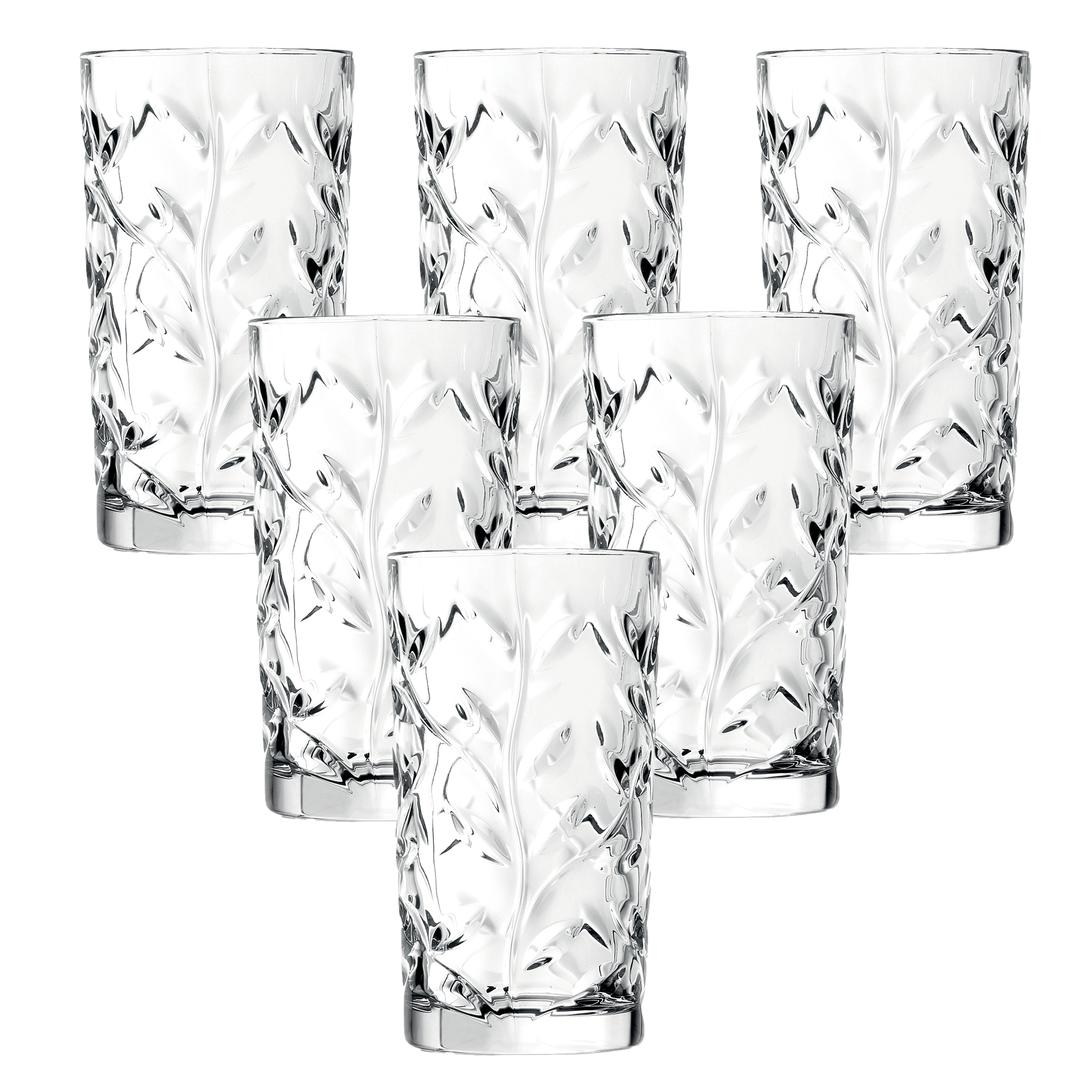 • RCR Laurus Collection Crystal Highball glass set of 6. Serve your drinks in this modern cut crystal glass made in the Tuscan region of Italy. These glasses have a timeless and elegant look that will enhance any table. Each glass measures 3" x 3" x 5.5" tall and holds 12 ounces of your favorite beverage. Dishwasher safe.