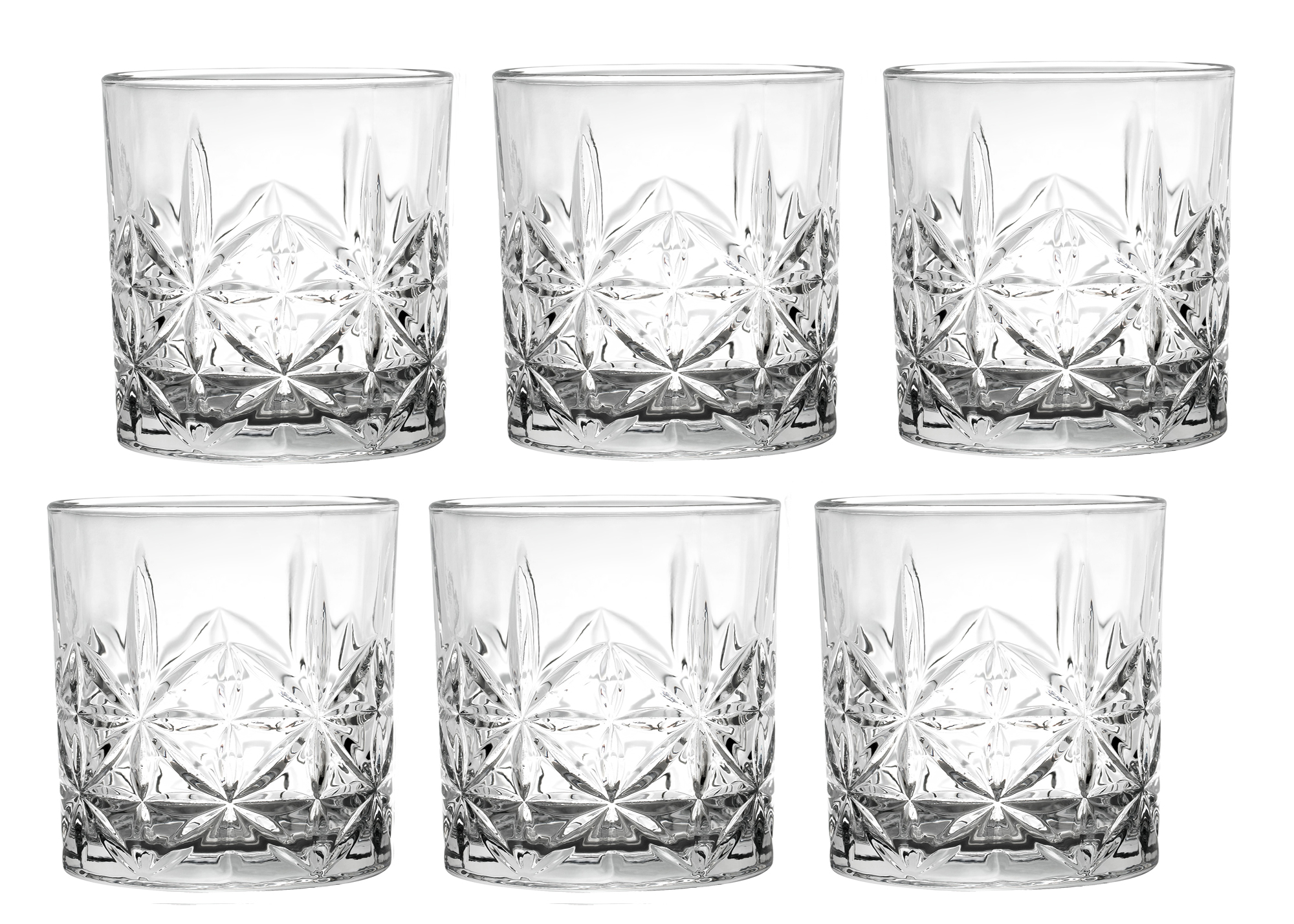 • Lorren Home Trends 11 Ounce Double Old Fashion Drinking Glass-Textured Cut Glass, Set of 6