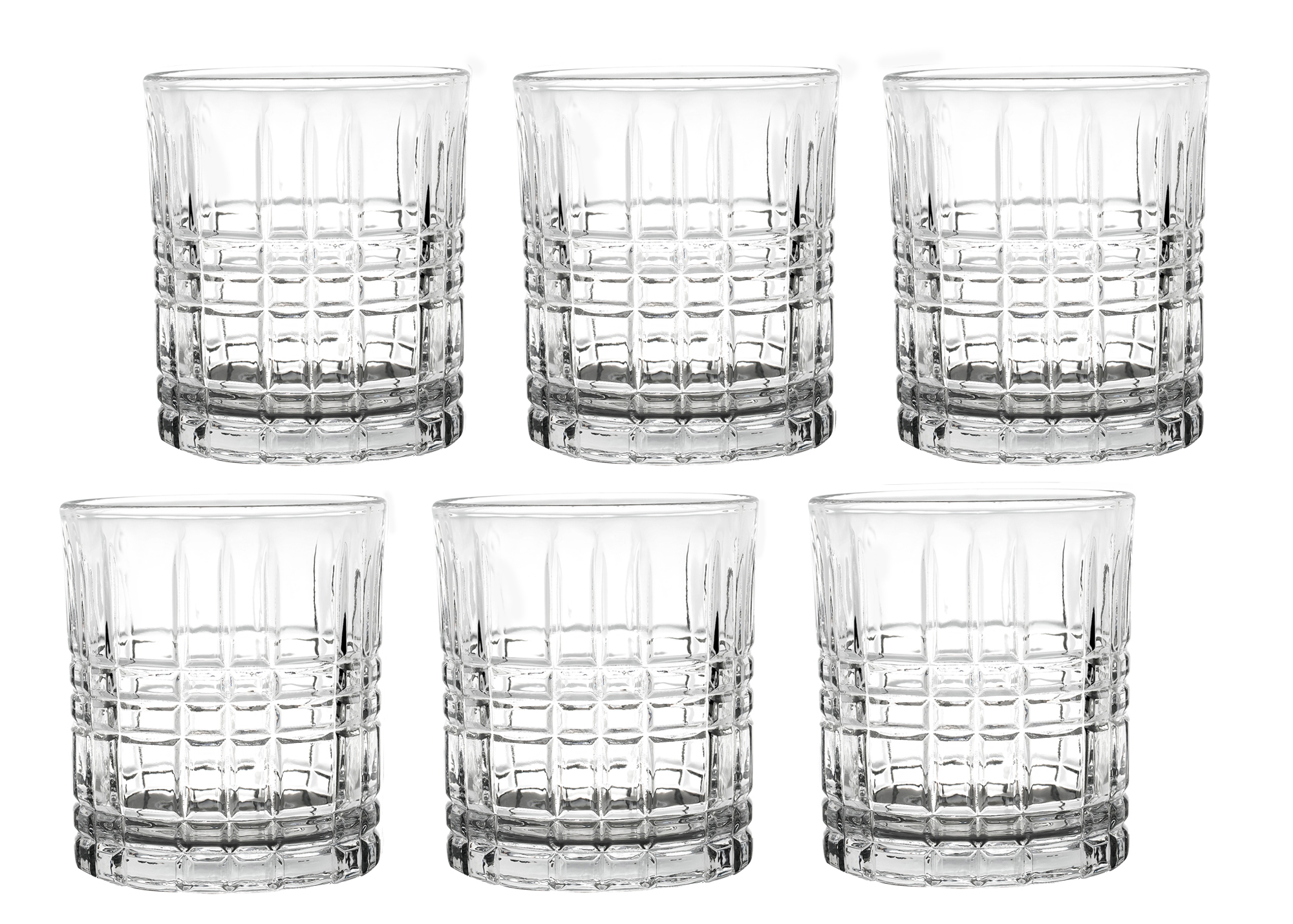 • Lorren Home Trends Tall 11 Ounce Double Old Fashion Drinking Glass-Textured Cut Glass, Set of 6. Glassware for Drinking Water, Beer, Milk, Juice, Cocktails, Scotch, Bourbon, and Whiskey. Dishwasher safe. Complete set of 6. Nice grip and well balanced feel to this glass. Lead Free glass, great for every day use. Elegant cut and engraved glass can dress up your table and enhance your drinks with a high end look.