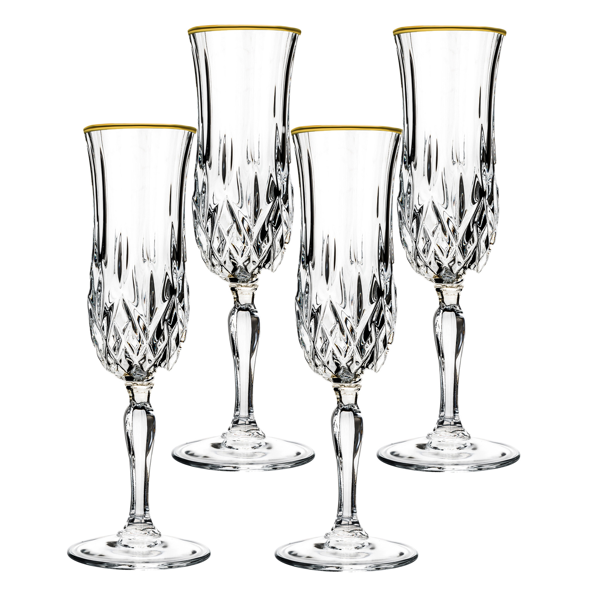 Opera Gold Collection Set of 6 Crystal Flute Glass with Gold Rim