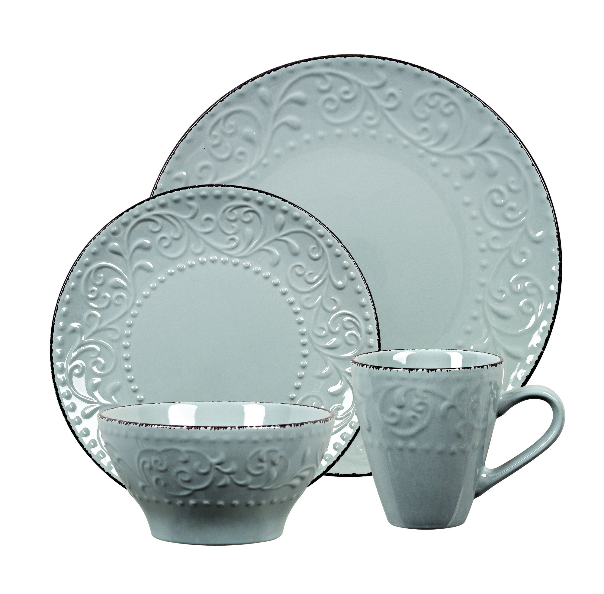 • Lorren Home Trends 16 Piece Stoneware Scroll Dinnerware Set-Gray