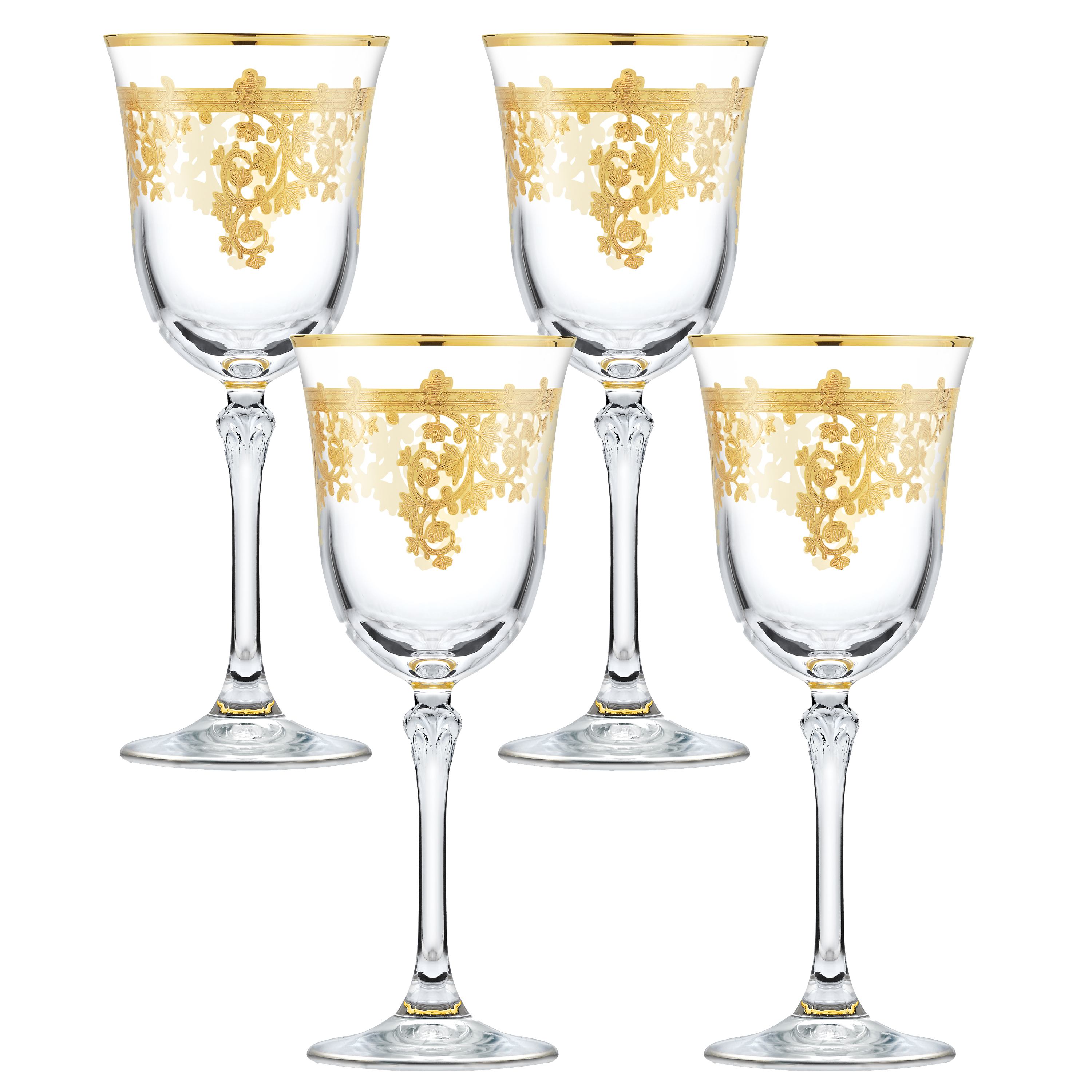 Set of 4 Embellished 24K Gold Crystal Red Wine Goblets-Made In Italy