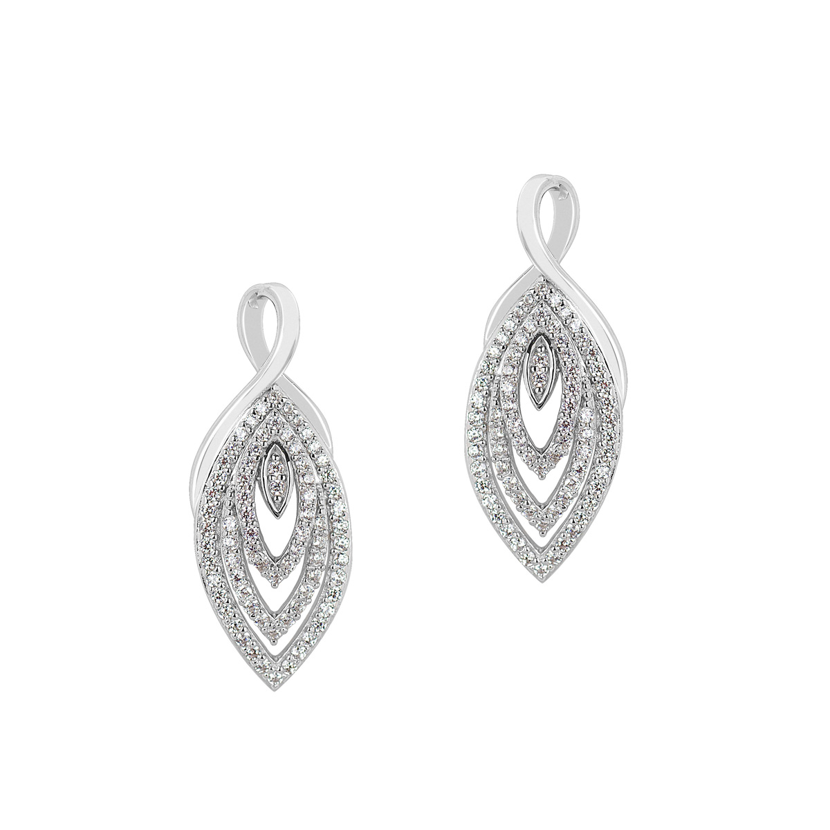 Silver Triple Marquise Shape Bands with CZs Earrings