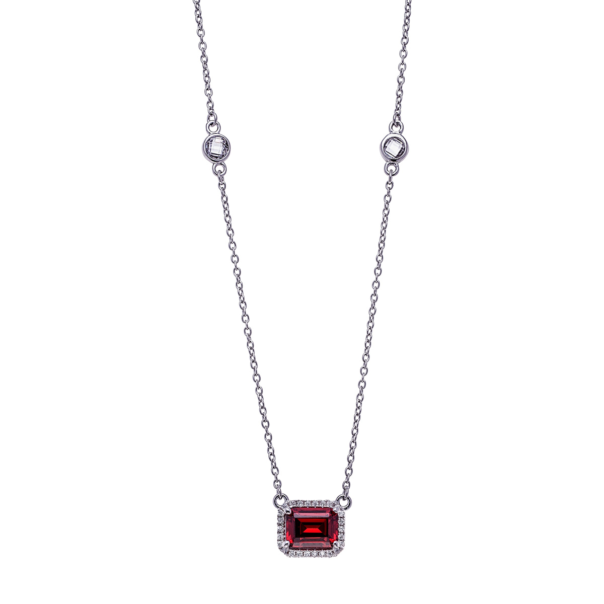 Silver Clear CZs Halo Design with Large Garnet CZ Center Necklace (January)
