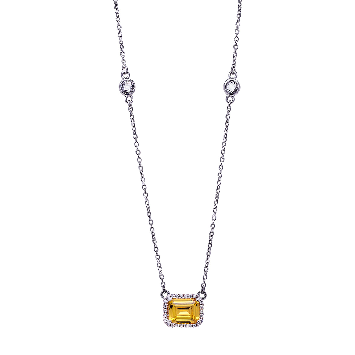 Silver Clear CZs Halo Design Necklace with Large Yellow CZ (November)