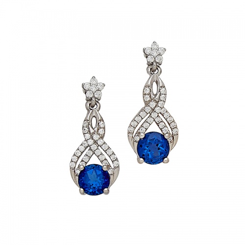 • .925 Silver AAA Quality Clear CZ Ribbon Design Earrings with Large Blue Center CZ