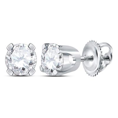 14K White Gold Unisex Round Diamond Solitaire Stud Earrings 0.38 Cttw