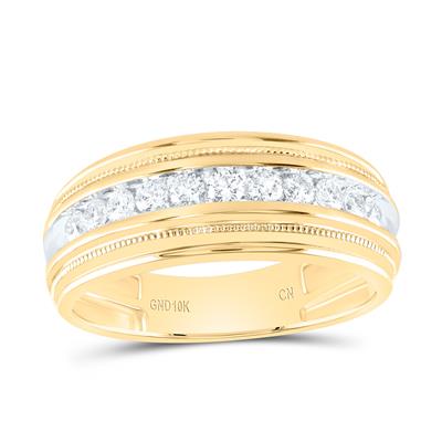 10K Yellow Gold Round Diamond Milgrain Ridged Wedding Band 0.50 Cttw