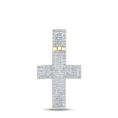 10K Yellow Gold Round Diamond Cross Charm Pendant 1 Cttw