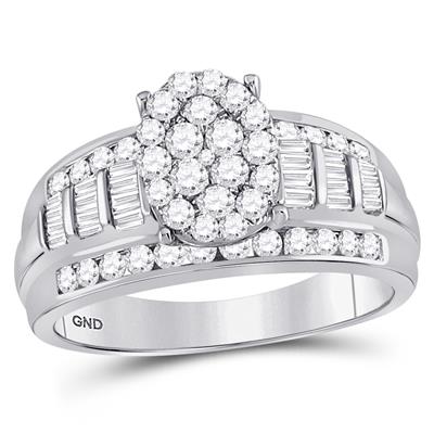10K White Gold Round Diamond Oval Cluster Bridal Engagement Ring 1 Cttw