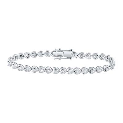 • Sterling Silver Round Diamond Heart Tennis Bracelet 1 Cttw