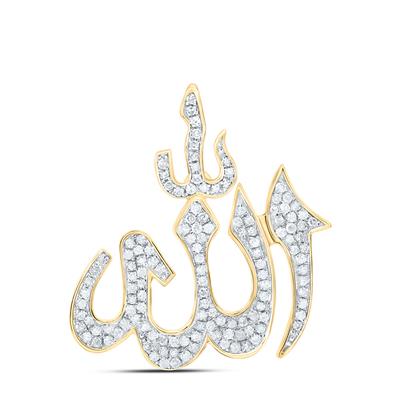 10K Yellow Gold Round Diamond Allah Islam Charm Pendant 0.33 Cttw