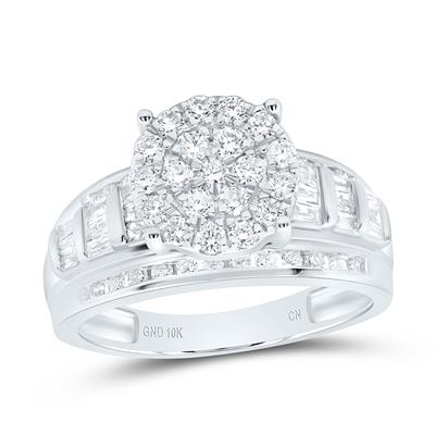 10K White Gold Round Diamond Cluster Bridal Engagement Ring 0.88 Cttw