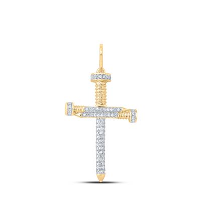 10K Yellow Gold Round Diamond Nail Cross Charm Pendant 0.33 Cttw