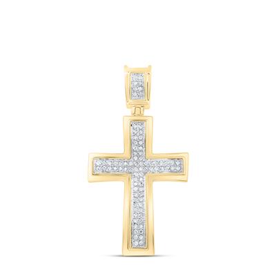 10K Yellow Gold Round Diamond Cross Charm Pendant 0.17 Cttw