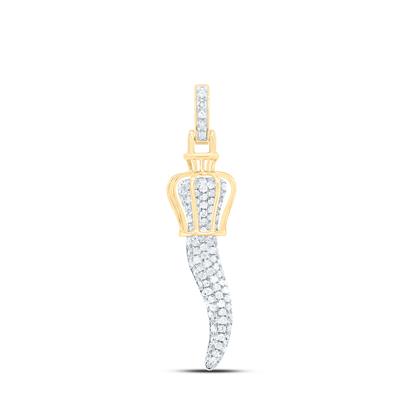 10K Yellow Gold Round Diamond Italian Horn Charm Pendant 0.50 Cttw