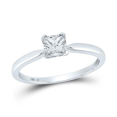 • 14K White Gold Princess Diamond Solitaire Supreme Bridal Ring 0.50 Cttw (Certified)