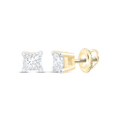 • 14K Yellow Gold Unisex Princess Diamond Solitaire Stud Earrings 0.25 Cttw (Certified)