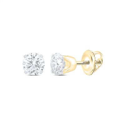• 14K Yellow Gold Unisex Round Diamond Solitaire Stud Earrings 0.88 Cttw (Certified)