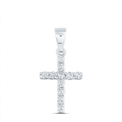14K White Gold Round Diamond Faith Cross Pendant 0.20 Cttw
