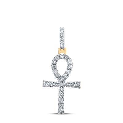 10K Yellow Gold Round Diamond Ankh Cross Charm Pendant 0.50 Cttw