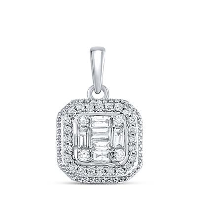 14K White Gold Baguette Diamond Fashion Cluster Pendant 0.25 Cttw