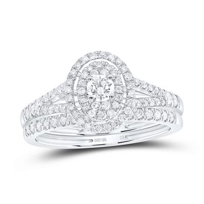 10K White Gold Round Diamond Oval Bridal Wedding Ring Set 0.50 Cttw