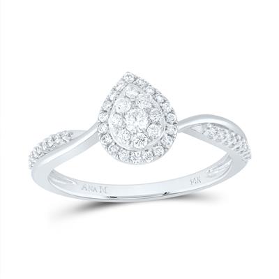 14K White Gold Round Diamond Teardrop Cluster Ring 0.33 Cttw