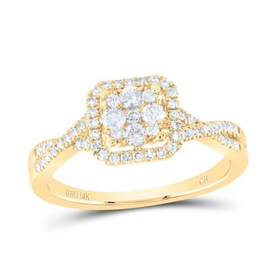 • 10K Yellow Gold Round Diamond Halo Cluster Promise Ring 0.50 Cttw