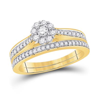 10K Yellow Gold Round Diamond Bridal Wedding Ring Set 0.50 Cttw