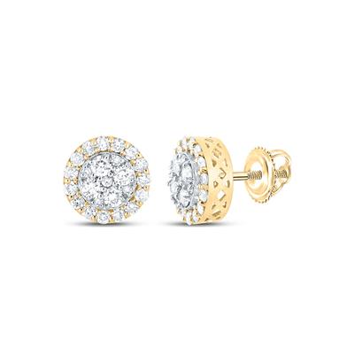 • 10K Yellow Gold Round Diamond Cluster Earrings 0.88 Cttw
