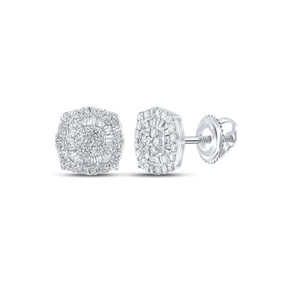 • 10K White Gold Baguette Diamond Square Earrings 0.75 Cttw