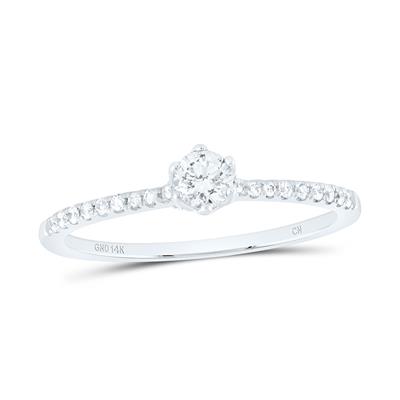 • 14K White Gold Round Diamond Solitaire Bridal Engagement Ring 0.33 Cttw (Certified)