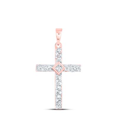 10K Rose Gold 10K White Gold Round Diamond Cross Pendant 0.25 Cttw