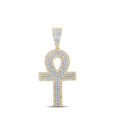 10K Two-Tone Gold Round Diamond Ankh Cross Charm Pendant 0.88 Cttw