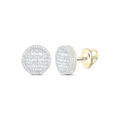 • 10K Yellow Gold Baguette Diamond Circle Earrings 1 Cttw