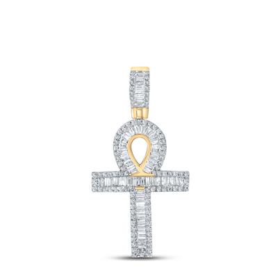 10K Yellow Gold Baguette Diamond Ankh Charm Pendant 0.75 Cttw