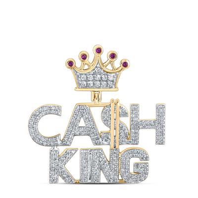 10K Yellow Gold Round Diamond Cash King Crown Phrase Charm Pendant 0.50 Cttw