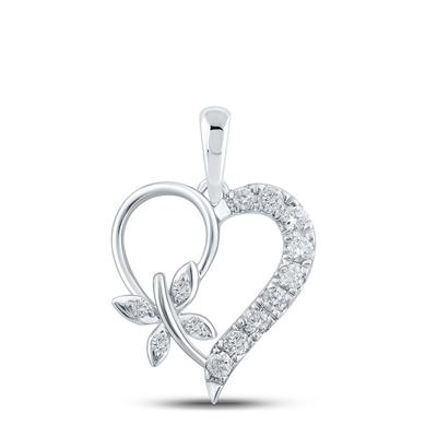 10K White Gold Round Diamond Butterfly Heart Pendant 0.25 Cttw