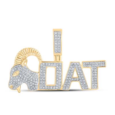 10K Yellow Gold Round Diamond Goat Phrase Charm Pendant 0.50 Cttw