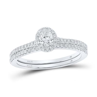 14K White Gold Oval Diamond Halo Bridal Wedding Ring Set 0.63 Cttw (Certified)