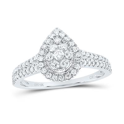 10K White Gold Round Diamond Teardrop Cluster Ring 0.50 Cttw