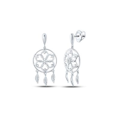 • 10K White Gold Round Diamond Dream Catcher Dangle Earrings 0.10 Cttw