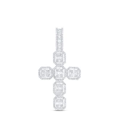 10K White Gold Baguette Diamond Cross Charm Pendant 1 Cttw