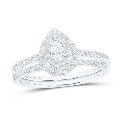 10K White Gold Pear Diamond Halo Bridal Wedding Ring Set 0.38 Cttw