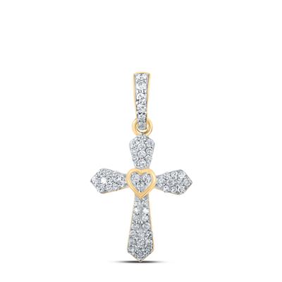 10K Yellow Gold Round Diamond Heart Cross Pendant 0.17 Cttw