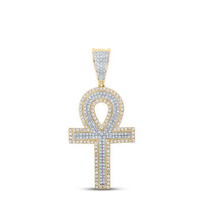 14K Two-Tone Gold Round Diamond Cross Charm Pendant 0.88 Cttw