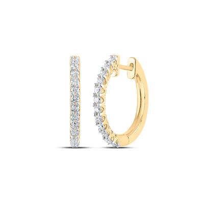 14K Yellow Gold Round Diamond Hoop Earrings 0.50 Cttw